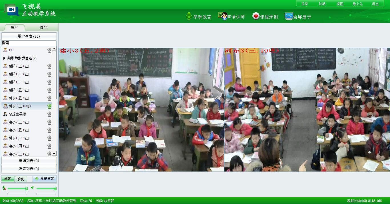 不僅如此,教師還可以借助飛視美視頻會議通過視頻、語音和學生現(xiàn)場互動,解答問題。學生可以在最短的時間里了解到最想知道的知識,通過飛視美遠程教學平臺,學生不用擔心聽不清楚老師的聲音,看不清楚老師的板書,不用擔心提出了一個簡單的問題后,被老師和同學嘲笑。這里沒有“前后桌”,這里沒有“冷板凳”。學生可以快樂的學習,縝密的思考,升華在學校里學到的知識。