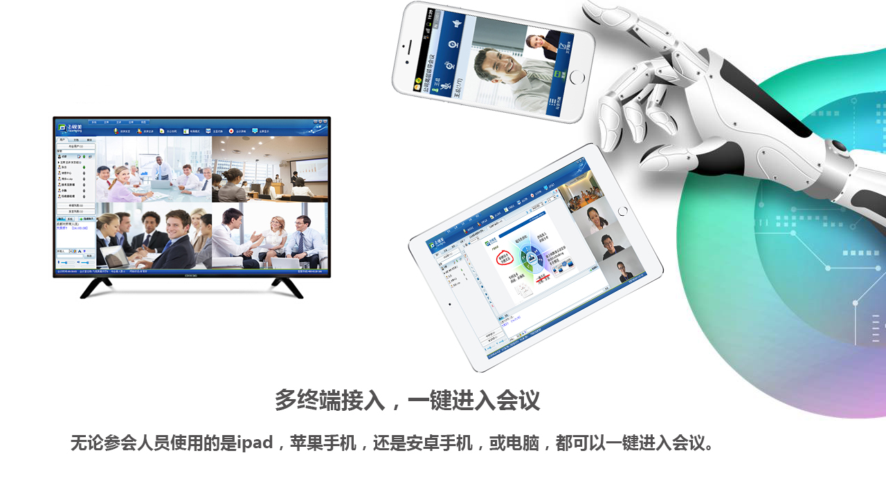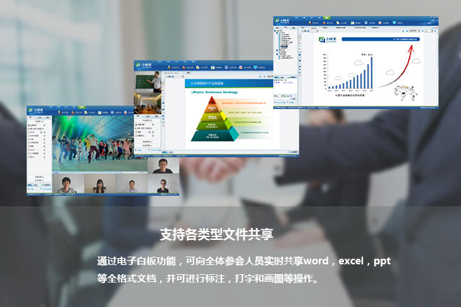 飛視美視頻會(huì)議滿足各場(chǎng)景的搭建方案,無論身處何處只要有網(wǎng)絡(luò),任何設(shè)備如手機(jī)、電腦、ipad等都能第一時(shí)間進(jìn)入會(huì)議,信號(hào)流暢、音質(zhì)清晰、1080p高清畫質(zhì),各類型文件共享,會(huì)議體驗(yàn)效果猶如面對(duì)面進(jìn)行溝通交流,較于傳統(tǒng)的電話、郵件溝通方式更為直觀有效。會(huì)議可容納上萬人同時(shí)在線,可隨時(shí)隨地開展企業(yè)會(huì)議、教育培訓(xùn)、視頻監(jiān)控、網(wǎng)絡(luò)發(fā)布會(huì)等,為用戶帶來高效率低成本享受。